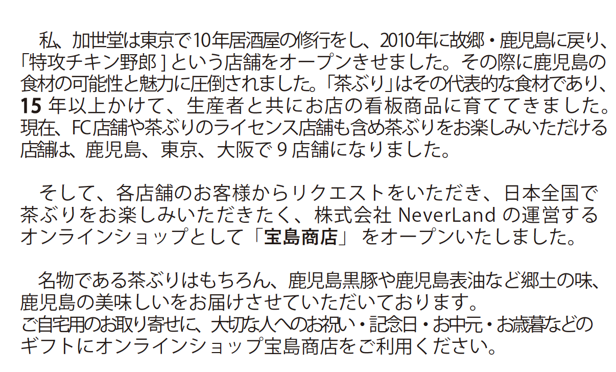 商品を販売、発送する宝島商店について